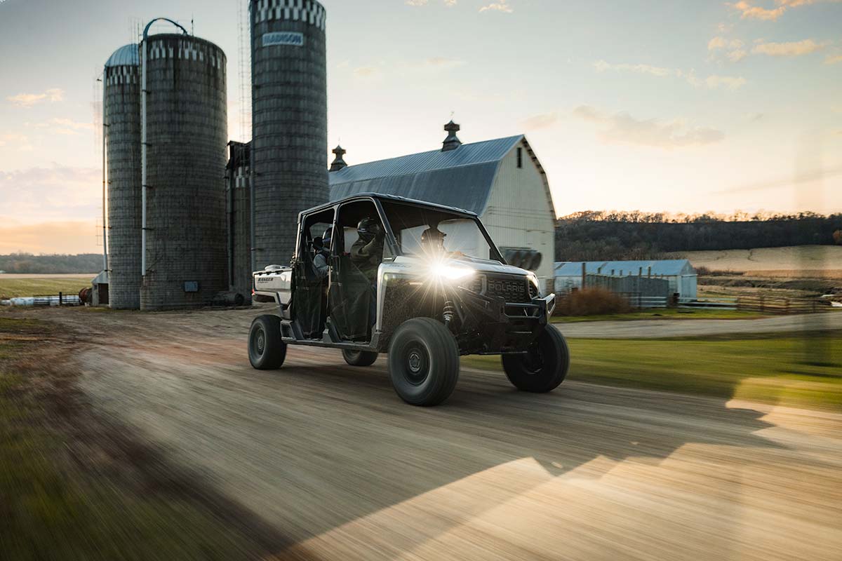 Premium Contoured Seats with Additional Bolstering and Center Armrests. Premium Steering Wheel and Interior Accents. Polaris Pulse Electrical System (6 position), 140 Amp Charging System, Roof with Liner, Front Bumper, DC Outlet, USB Charge Port, Trickle Charger, 12V Located in the Cargo Box with In-Dash On/Off Switch, NFC Front Badge